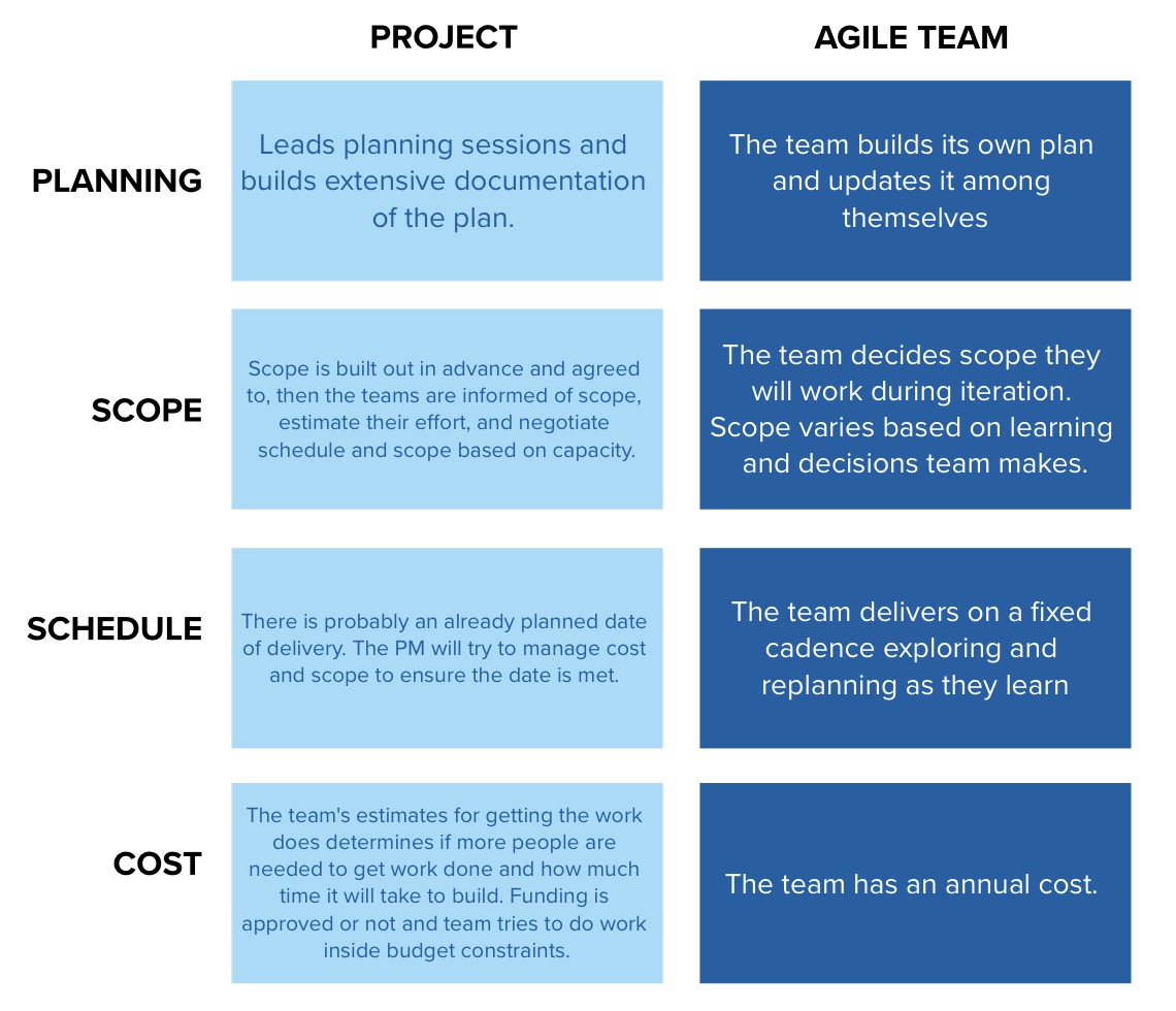 • The team decides the process, so no PM enforces it, and there is no gatekeeping of the team’s activity requiring sign-offs or contractual type documents