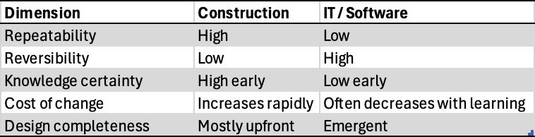 Back in the 1980’s, IT work was mostly construction work. Roll in the machines, run the wires, install the terminals, turn stuff on. Because of that, the practice of managing software development in those same departments ended up using construction project management.