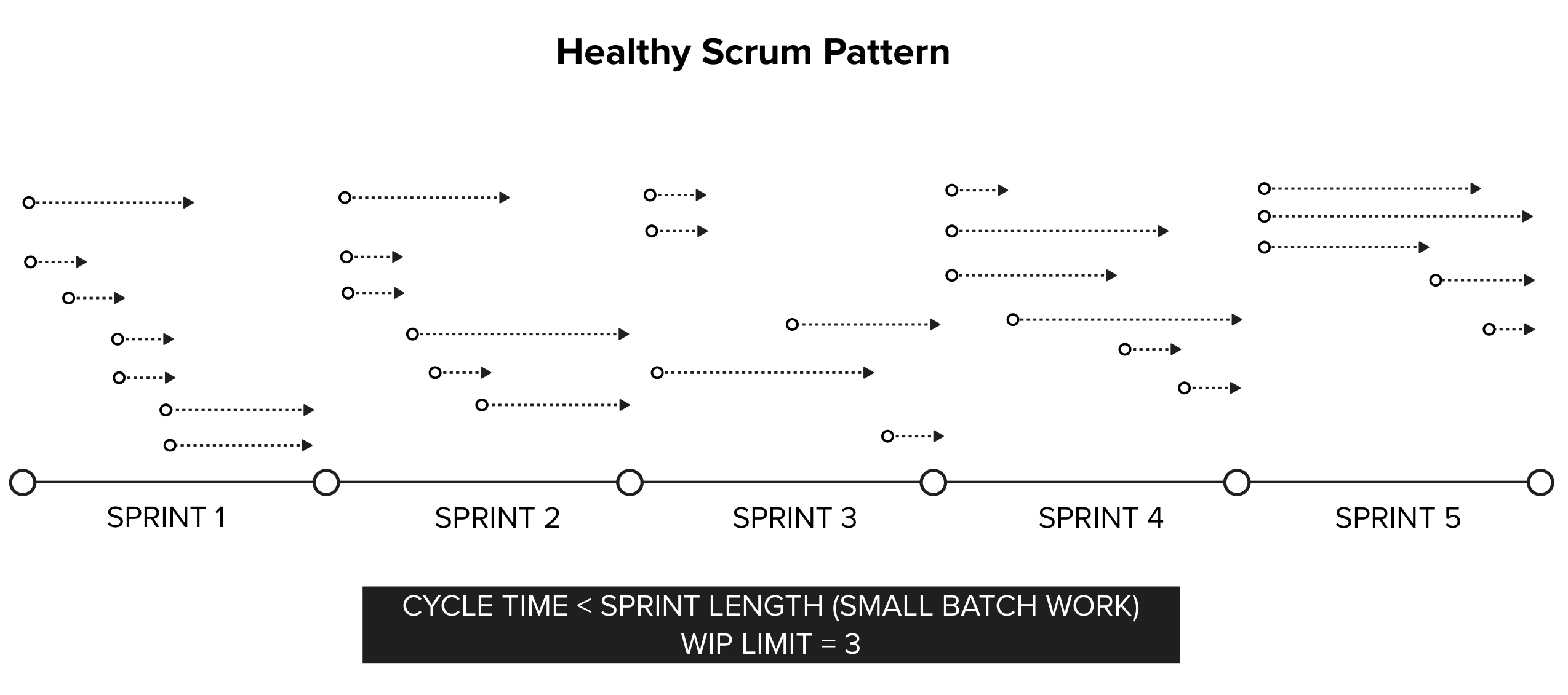 If the cycle time of the work performed during the sprint is longer than the length of the sprint, then the length of the sprint is not the cadence, learning is delayed, and the iterative, incremental delivery system delivers far less value.