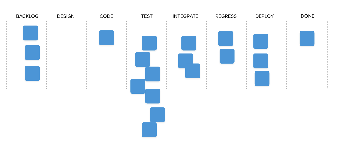 • Improving one step in the process will likely cause slowdowns as WIP limits are violated in celebration of increased throughput at CODE.