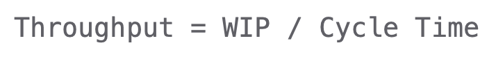 Throughput lives in relationship with cycle time and work-in-process (WIP) in Little’s Law:
